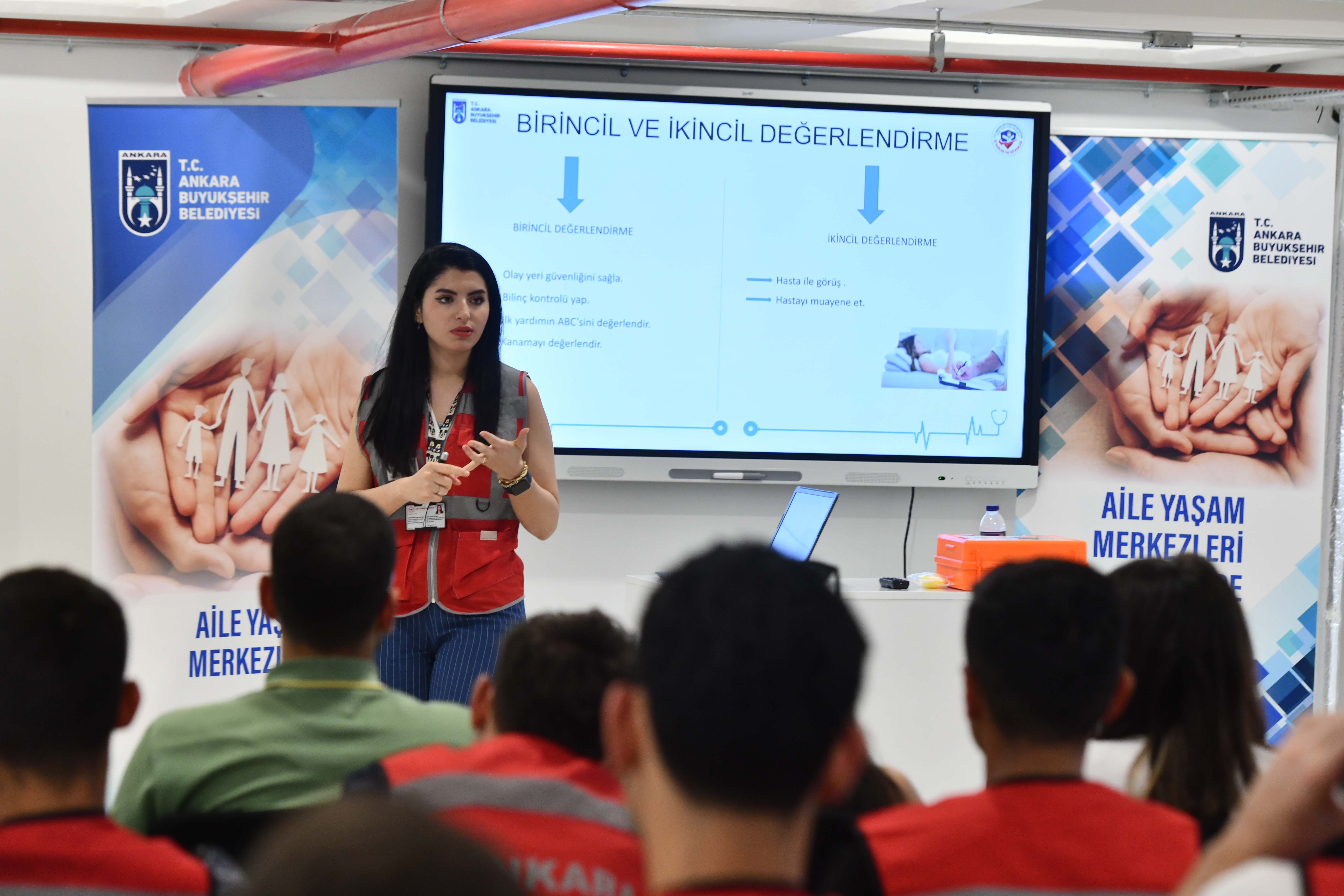 Ankara Büyükşehir Belediyesi’nde staj yapan öğrencilere yönelik ‘Temel İş Sağlığı, Güvenliği ve İl Yardım Eğitimi’ düzenlendi. İş güvenliği kültürünün yaygınlaştırılması ile görev sırasındaki risk ve tehlikelerin en aza indirilmesi amacıyla gerçekleştirilen eğitimin sonunda stajyerlere katılım belgesi verildi.
