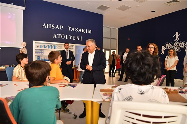 Başkan Büyükkılıç, sıcak ve samimi ortamda çocuklarla buluşurken, minikler robotik kodlama, maket uçağı, lego, resim ve teleskop gibi birbirinden önemli eğitimler aldıklarını anlattılar.