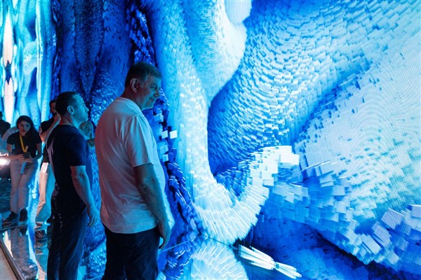 İzmir Büyükşehir Belediye Başkanı Cemil Tugay, 94. İzmir Enternasyonal Fuarı’nda açılan Refik Anadol’un “Şifanın Algısı” ve “Makine Rüyaları: Ege” ile “Ve Mavi Gözleri Çakmak Çakmaktı” Mustafa Kemal Atatürk sergilerini gezdi.