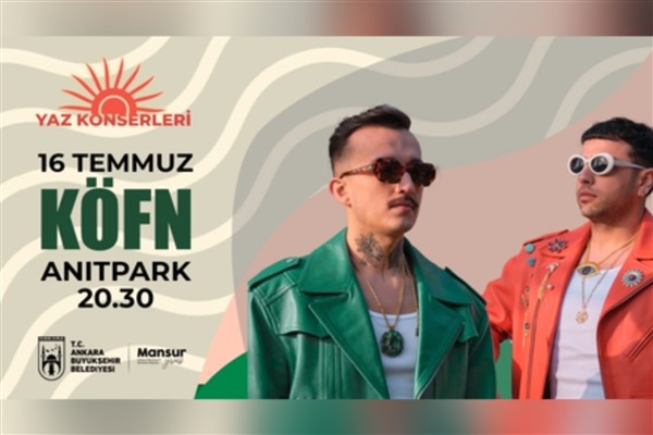 Son dönemin en popüler gruplarından olan KÖFN en sevilen şarkılarını 16 Temmuz Pazar günü Anıtpark’ta Başkentlilerle birlikte söyleyecek. Konser saat 20.30’da başlayacak.
