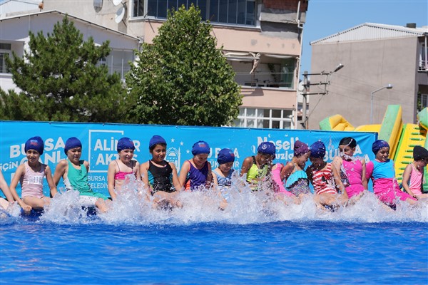 Proje kapsamında yaklaşık 5 bin çocuğun yüzme sporuyla buluşması hedeflenirken, Osmangazi ilçesindeki Şehit Jandarma Uzman Çavuş İlyas Genel İlkokulu bahçesi ise tam bir aquaparkı andırıyor. Yüzme eğitiminin yanında çocuklar, kaydıraklı havuzlarda gönüllerince eğleniyor. Eğitim dönemi boyunca zaman zaman isteksiz geldikleri okullarına bu kez büyük bir istek ve heyecanla koşan çocuklar, okul bahçesinde tatilin tadını çıkarıyor.