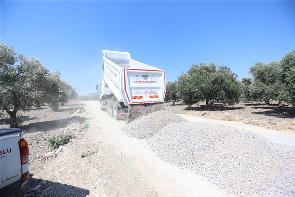 Akhisar Belediyesi, Dereköy ve Sakarkaya mahallelerini birbirine bağlayan 3,5 kilometrelik ova yolunda sathi kaplama çalışmalarına başladı.