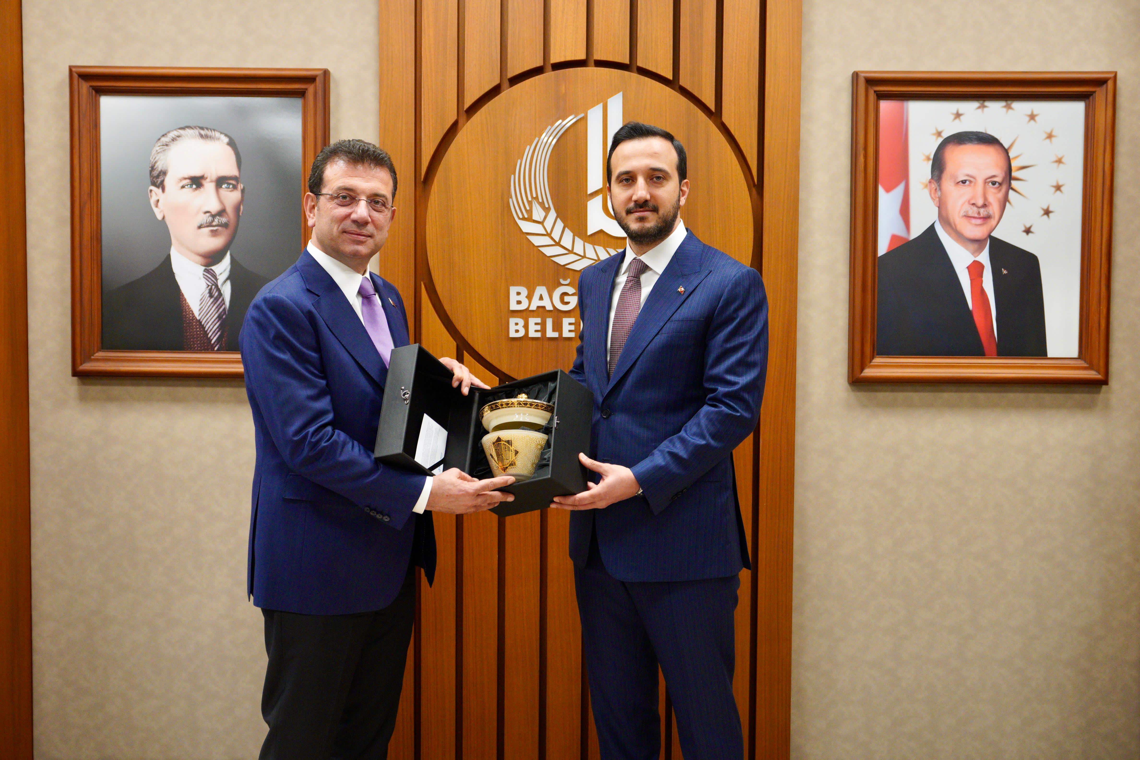 İstanbul Büyükşehir Belediye (İBB) Başkanı Ekrem İmamoğlu, Bağcılar Belediye Başkanı Abdullah Özdemir’i makamında tebrik etti.