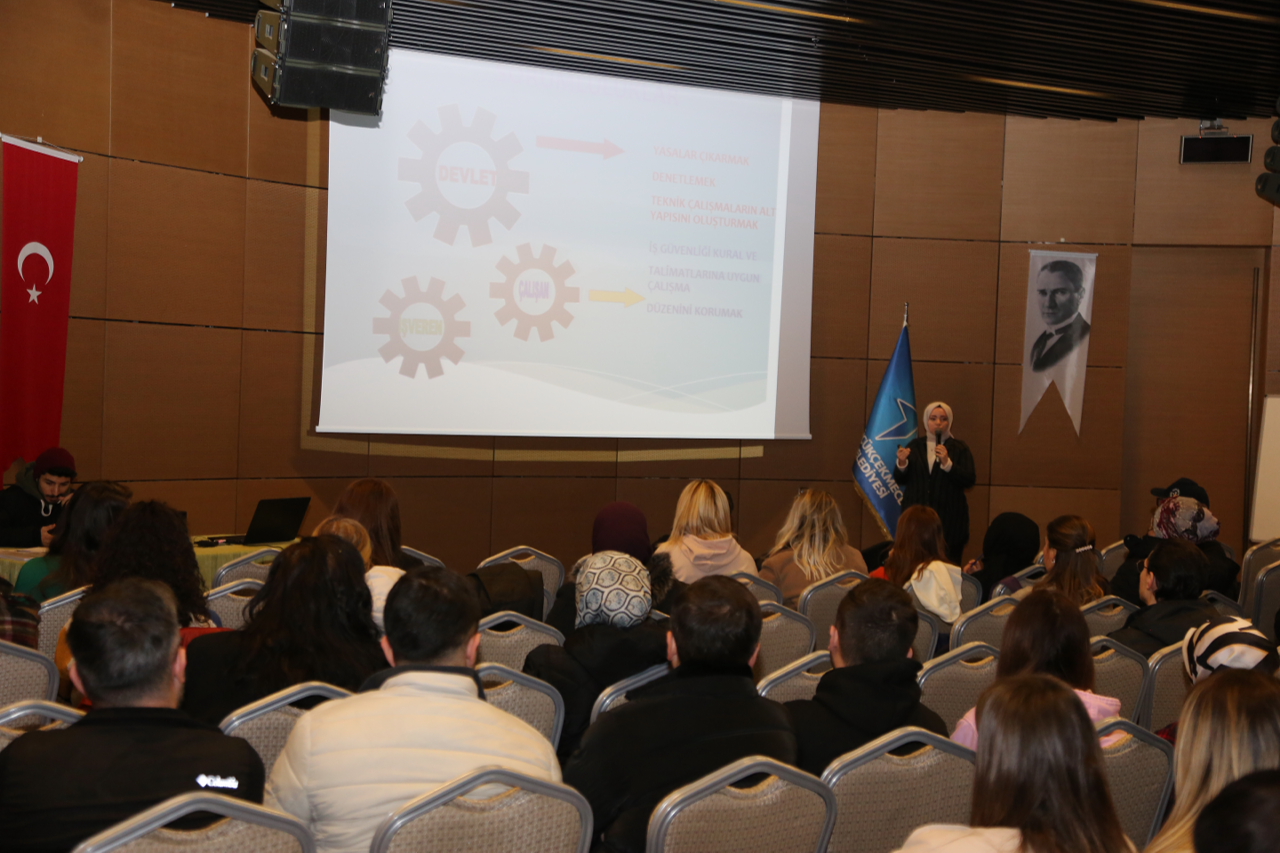 Eğitimin temel amacının personelin bilgilendirilmesi sonucunda iş kazalarının azaltılması ve ortadan kaldırılması olduğunu ifade eden İş Sağlığı ve Güvenliği Uzmanı Burcu Bayraktar, ‘’İş sağlığı ve güvenliğinin sağlanması ve meydana gelebilecek iş kazalarına karşı önlem alınması konusunda işveren ve çalışanlara da bazı sorumluluklar düşüyor. Devlet yasalar çıkaracak, denetleyecek ve gerekli alt yapıyı oluşturacak, işveren devletin çıkardığı yasalara uyacak ve güvenlik konularında gereken önlemleri alacak. Çalışanlar ise iş güvenliği kural ve talimatlarına uygun bir şekilde çalışacak.’’ diye konuştu.