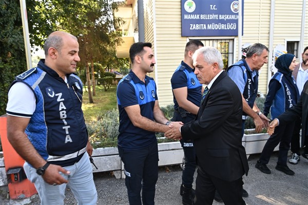 Mamak Belediye Başkanı Veli Gündüz Şahin, başkan yardımcıları Sibel Emre, Erdoğan Doğan ve Uğur Sarı’yla birlikte Mamak Zabıta Müdürlüğü’nü ziyaret etti.