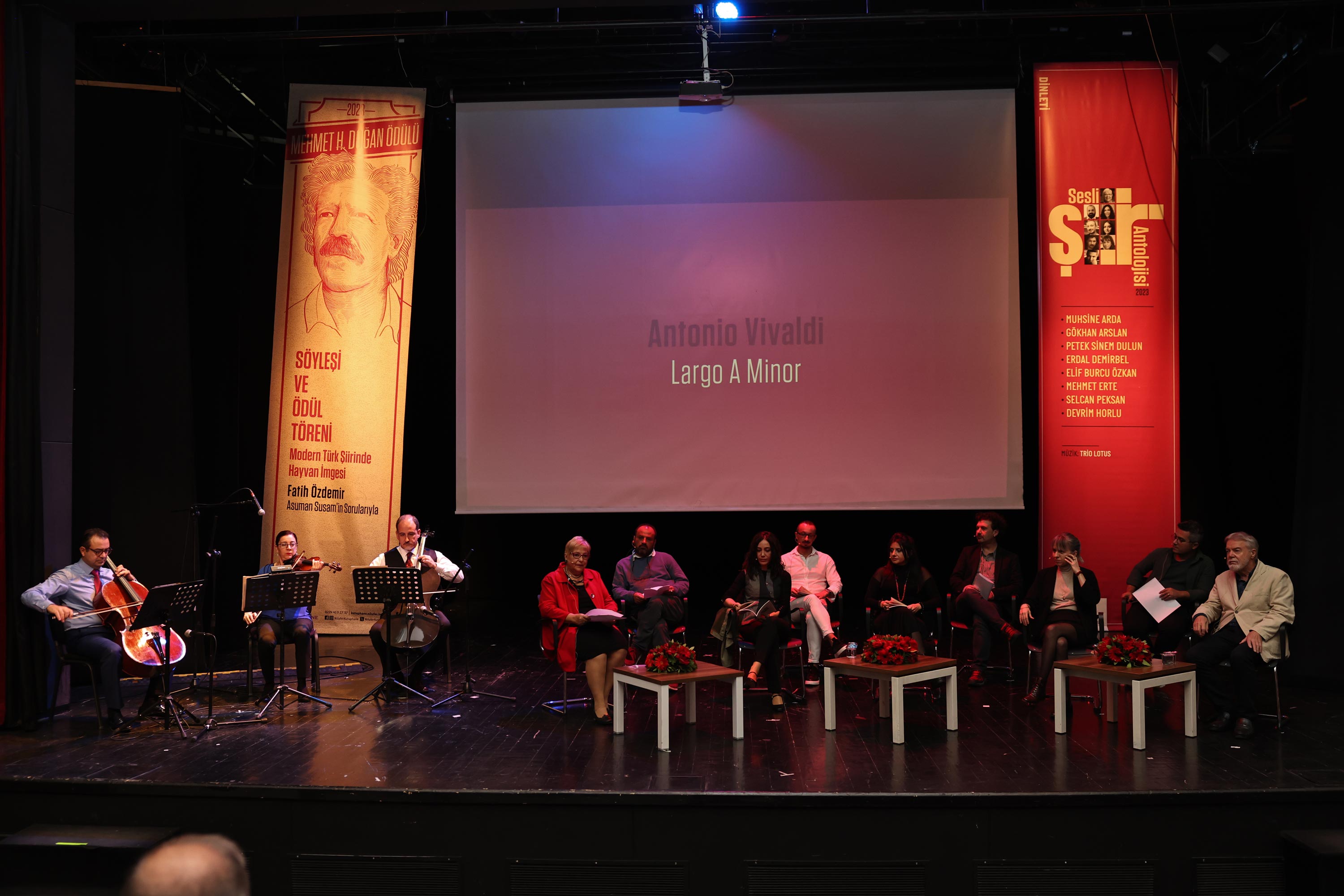 Söyleşinin ardından, Sesli Şiir Antolojisi’ne geçildi. Trio Lotus’un müzikleriyle eşlik ettiği Sesli Şiir Antolojisi’nde, Muhsine Arda, Gökhan Arslan, Petek Sinem Dulun, Erdal Demirbel, Elif Burcu Özkan, Mehmet Erte, Selcan Peksan ve Devrim Horlu, kendi şiirlerini okudu. Nilüfer Belediyesi Göl Yazıevi’nde çalışmalarını sürdüren Estonyalı ödüllü şair Juri Talvet de, Sesli Şiir Antolojisi’ne konuk olarak, şiirlerini seslendirdi.