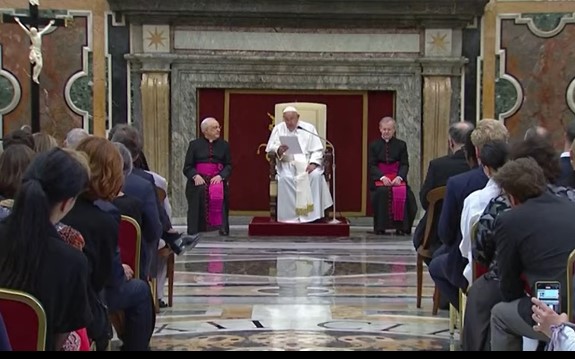 Kültür ve Eğitim Manastırı ile İletişim Manastırı tarafından düzenlenen Vatikan'daki toplantı da, Papa konuşmasının başında, "Kendilerini komedi, mizah ve ironi diliyle ifade eden siz sanatçıları saygıyla selamlıyorum. Yeteneğiniz bir armağan, değerli bir armağan." dedi.