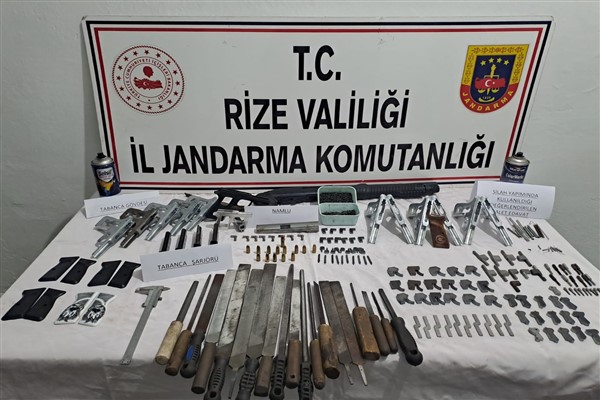 Rize Valiliğinden yapılan açıklamaya göre, Rize İl Jandarma Komutanlığı, KOM Şube Müdürlüğü silah imal ve ticareti kapsamında yapılan istihbari çalışmaları sonucunda; Ardeşen ilçesinde ikamet eden M.U. isimli şahsa ait adreste yapılan aramalarda; 1 adet silah imalathanesi, 12 adet metal yarı mamul tabanca gövdesi, 1 adet plastik yarı mamul tabanca gövdesi/kalıp, 4 adet tabanca şarjörü, 13 adet tabanca fişeği, 1 adet ruhsatsız av tüfeği, 1 adet 9.65 çapında tabanca fişeği, 9 adet tabanca kabza kapağı, 2 adet yarı mamul tabanca üst kapağı, 48 adet yarı mamul tabanca parçası, 20 adet farklı boyutlarda törpü, 1 adet kumpas, 767 adet vida, 24 adet yay, 589 adet oval pim, 16 adet yarı mamul tetik parçası, 9 adet yarı mamul yan tutucu pim, 16 adet yarı mamul tabanca horoz parçası, 10 adet T şeklinde tutucu pim, 22 adet yarı mamul tabanca iğnesi, 2 adet sabit matkap, 1 adet taşlama makinası, 1 adet hava kompresörü, 3 adet mengene, 1 adet fırın, 2 adet tabanca boyası, 1 adet cep telefonu ele geçirildi.