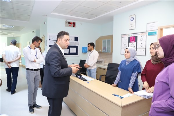 ŞANLIURFA-09.08.2023-HİBYA- Şanlıurfa İl Sağlık Müdürü Dr. Ögr. Üyesi Abdullah Solmaz, hizmet başkanları ile birlikte Akçakale Devlet Hastanesi’nde incelemelerde bulundu.