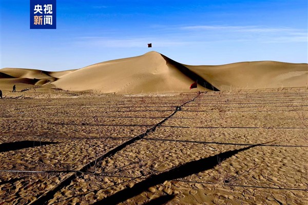 Bir yıldan fazla bir süredir, Kaşgar, Hotan ve Bayingolin’den 600 bin kişinin katılımıyla, biyolojik yöntemler, fotovoltaik ve diğer projeler uygulama yöntemleriyle çölün sınırı kilitlendi.