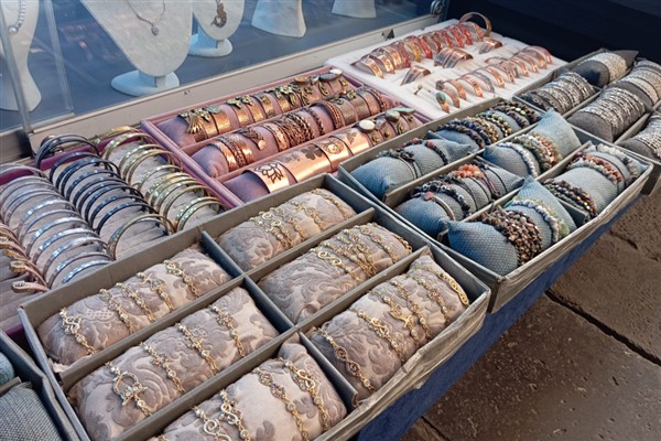 “40 yıldır burada doğal taşlar, bakır ve metal gibi ürünlerle küpe, kolye, bileklik, halhal üretimi ve işlemesi yapıyoruz. Doğal taşın aslı, işlenmemiş topraktan direkt olarak çıkan taştır. Ben de takı yaparken en çok buna dikkat ediyorum. Taşı mümkün olduğu kadar sade haliyle işleyerek takıya dönüştürüyorum.”
