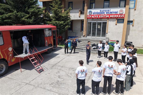 Proje kapsamında Kayseri İl Milli Eğitim Müdürlüğü bünyesinde eğitim gören 9. ve 10. sınıf öğrencilerinden seçilen 18 kişilik grup, Büyükşehir Belediyesi Afet İşleri ve İtfaiye Daire Başkanlığı tarafından verilen “Afet Farkındalığı ve Yangın Eğitimi”ne katıldı.