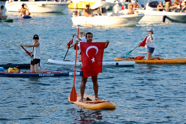 Etkinliklerin sunuculuğunu ise İbrahim Aydoğan ve Yasin Kınay yaptı. Kutlamalarda yüzme, halat çekme, tabak atma ve yağlı direk yarışmaları yapıldı. Yüzme yarışında 18 yaş altı erkeklerde Ata Gani Birben, 18 yaş altı kadınlarda Tuana Özmen, 18 yaş üstü kadınlarda Havin Duman, 18 yaş üstü erkeklerde İlyas Bülbül birinciliği elde etti. Halat çekme yarışmasını ise Ahmet Yüksel kazandı. Tabak atma etkinliğinde ise denize atılan melamin tabakları toplayanlara çeşitli hediyeler verildi. Furkan Yılmaz, flyboard gösterisi gerçekleştirdi. Yılmaz, açtığı Türk Bayrağı’nı protokol üyelerine takdim ederken, Sub Board geçiş korteji de ilgi gördü.