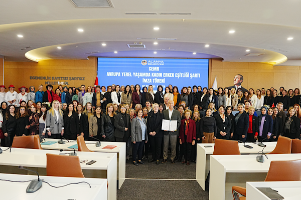 Alanya'da yerel yönetimlerde kadın-erkek eşitliğini güçlendirmeye yönelik önemli bir adım attı. Alanya Kent Konseyi’nin tavsiye kararı doğrultusunda Alanya Belediye Meclisi’nde kabul edilen CEMR Avrupa Yerel Yaşamda Kadın-Erkek Eşitliği Şartı, düzenlenen törenle Alanya Belediye Başkanı Osman Tarık Özçelik tarafından imzalandı.