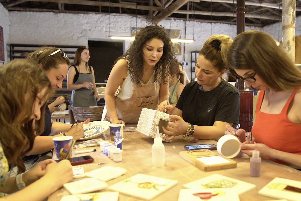 Eski bir zeytinyağı fabrikasının dönüştürülmesiyle kurulan atölye, seramik ve çini sanatını doğayla buluşturan yaratıcı bir alan sunmayı hedefliyor.
