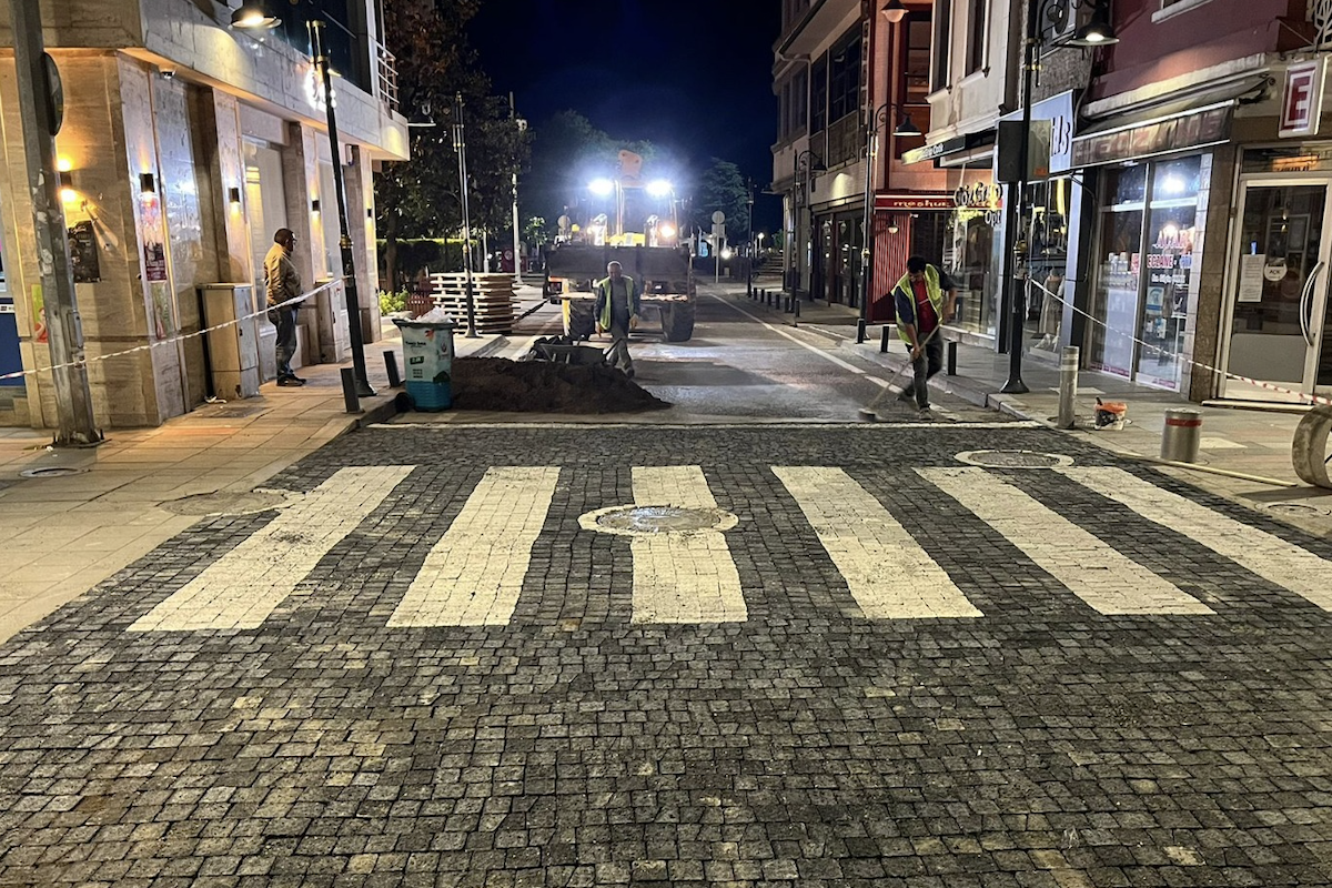 Fatih ve Hükümet Caddeleri’nde yapılan düzenlemeler kapsamında yaya geçitlerine begonit taş döşenirken, zamanla çökme yaşanan taşlar da yenilendi.