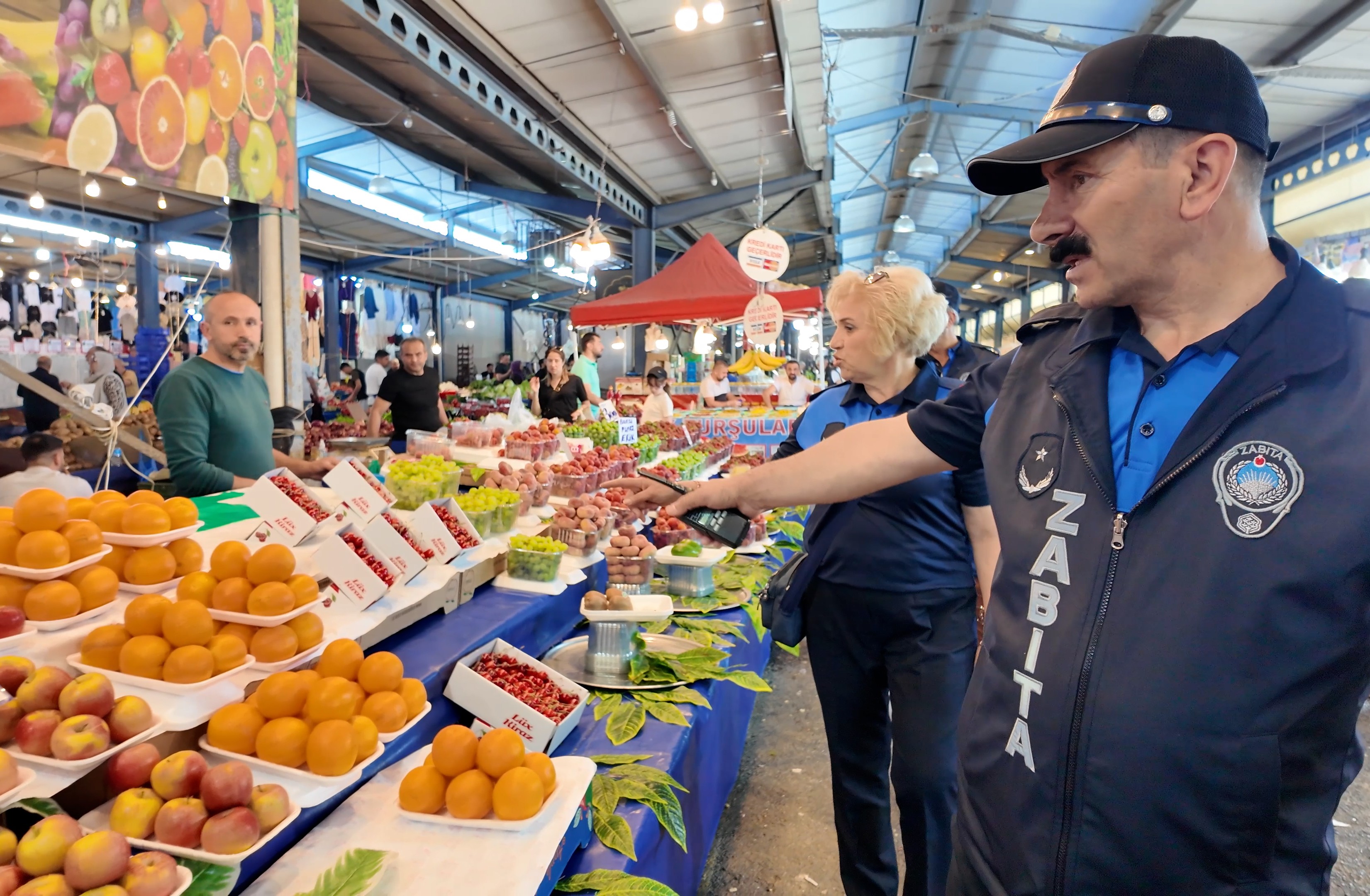 6502 sayılı Tüketicinin Korunması Hakkında kanun gereğince yapılan uygulamada, tezgahların hijyen durumu, terazilerin bulunduğu konum ve standarda uygunluğu, pazar düzeni ve etiket fiyatlarının anlaşılır olması kriterlerine göre kontroller yapılıyor.