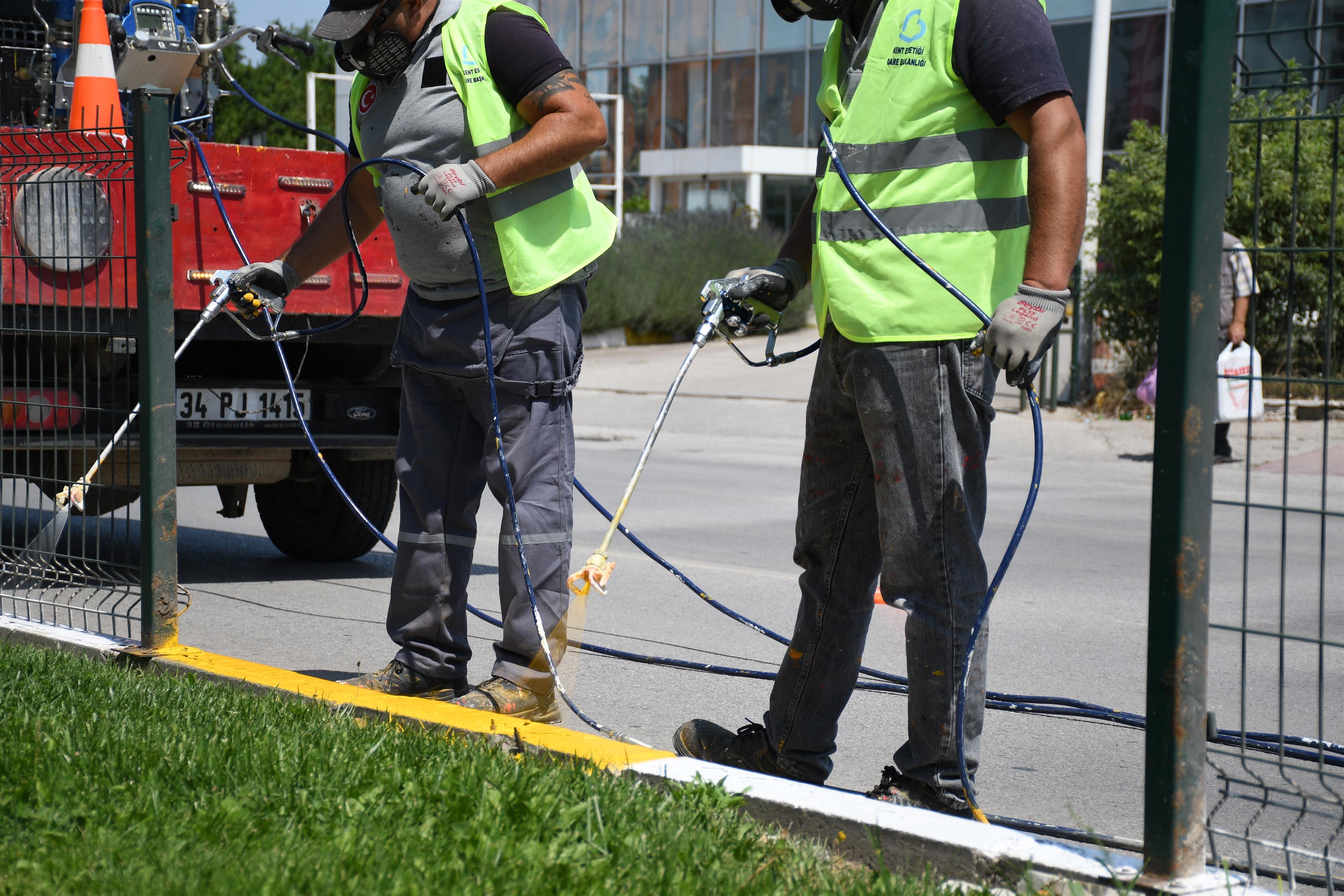 Çalışmalarını sürdüren Kent Estetiği Daire Başkanlığı’na bağlı ekipler; Bandırma Caddesi, Vasıf Çınar Caddesi ve Yeni İzmir Yolu Caddesi’nde de planlanan çalışmalar kapsamında refüjlerde boyama, bakım ve yenilemelere devam edecekler.