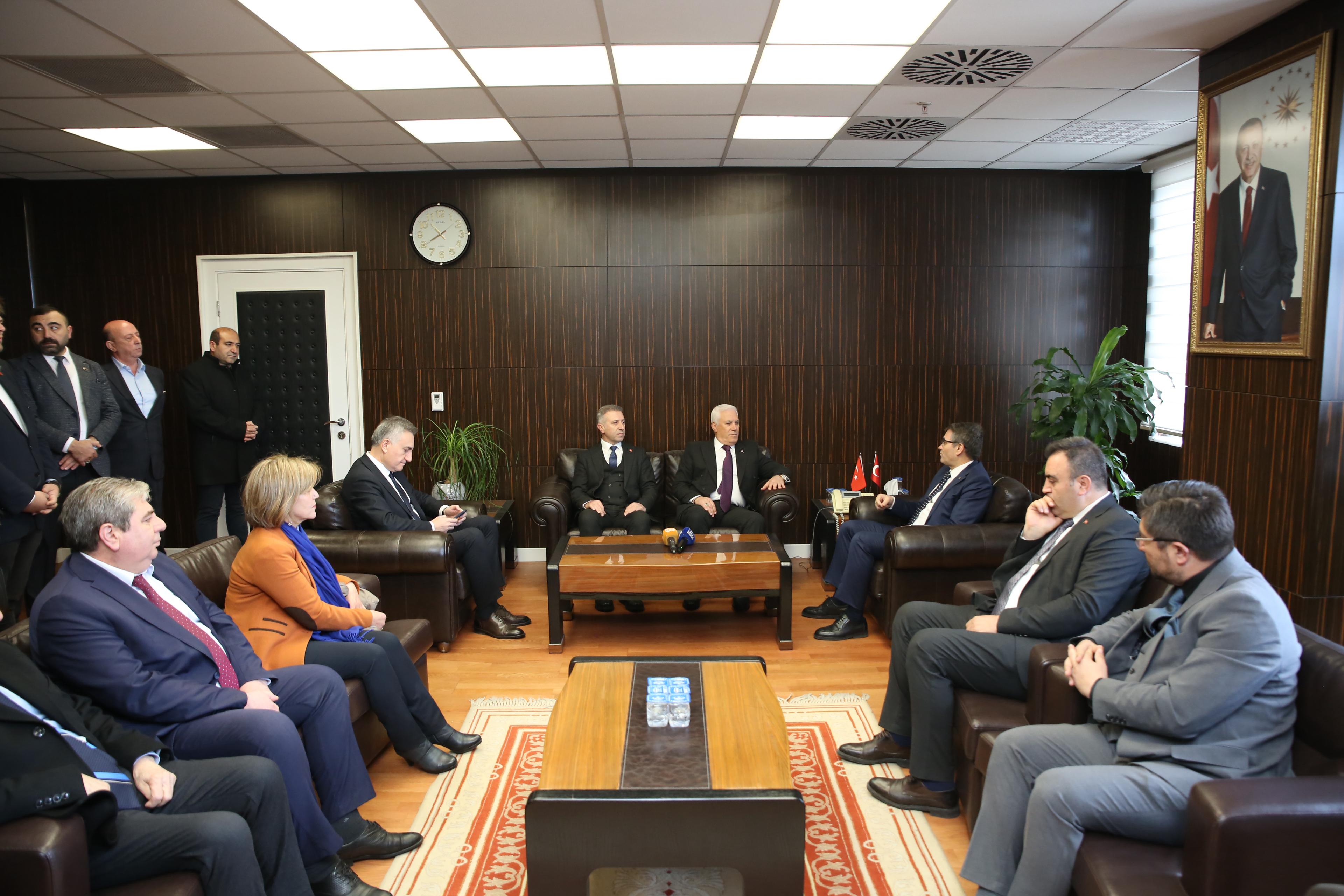 Başkan Bozbey, son olarak Yıldırım ilçesi Piremir Mahallesi’nde tüm yönetim kadrosuyla birlikte halkla bir araya geldi. İlk olarak Yıldırım Kaymakamı Metin Esen’i makamında ziyaret eden Bozbey, burada CHP Yıldırım İlçe Başkanı İlhami Gün ile birlikte kentsel dönüşüm ve afet yönetimi konularını görüştü.