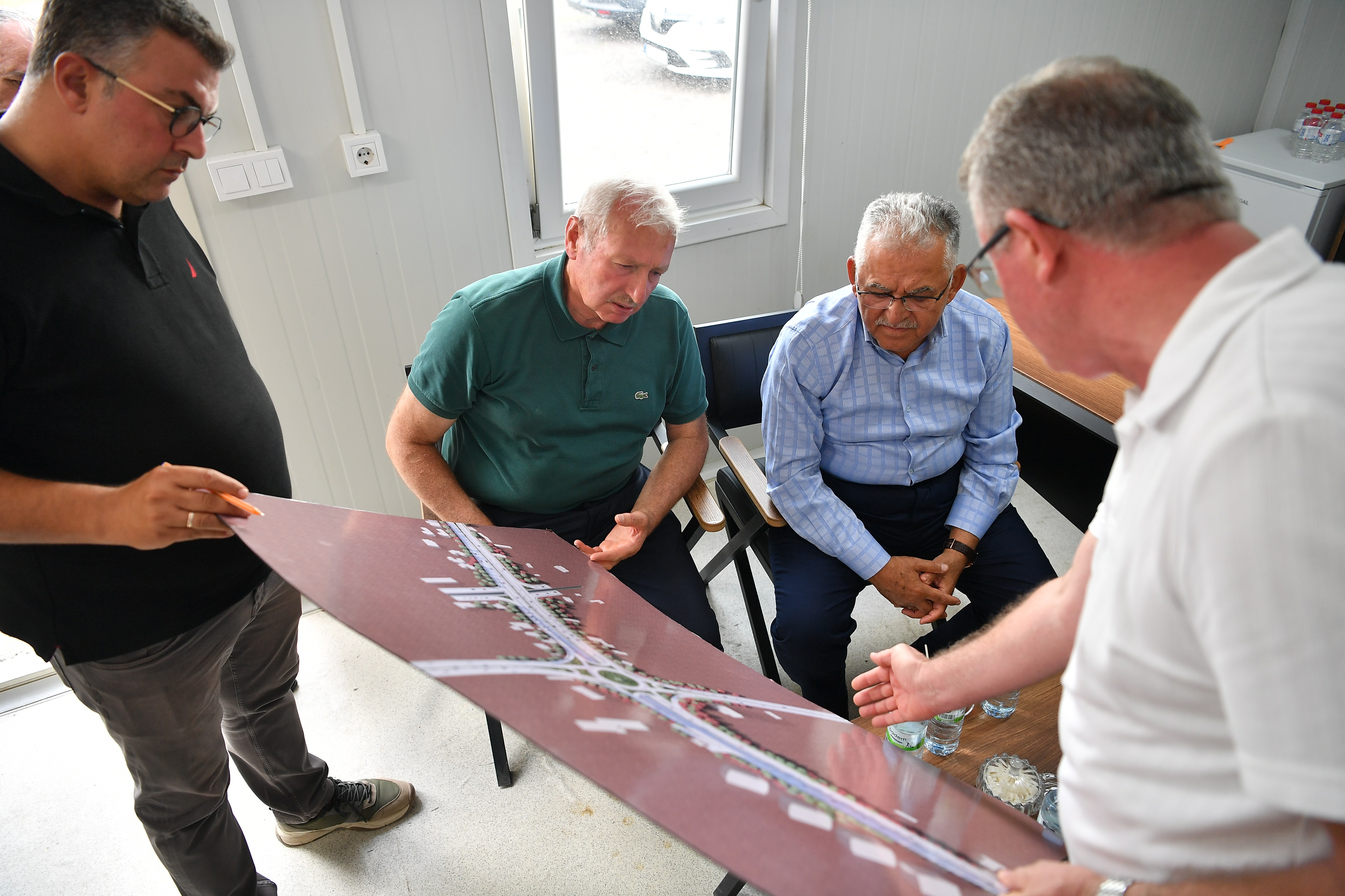 Mehmet Özhaseki Bulvarı ile Askeri Hastane Caddesi kesişiminde yürütülen çalışmaları yerinde takip eden Başkan Büyükkılıç, projeye dair teknik sunum aldı, şantiye alanını adım adım gezdi ve yüklenici firma yetkililerinden bilgi aldı.