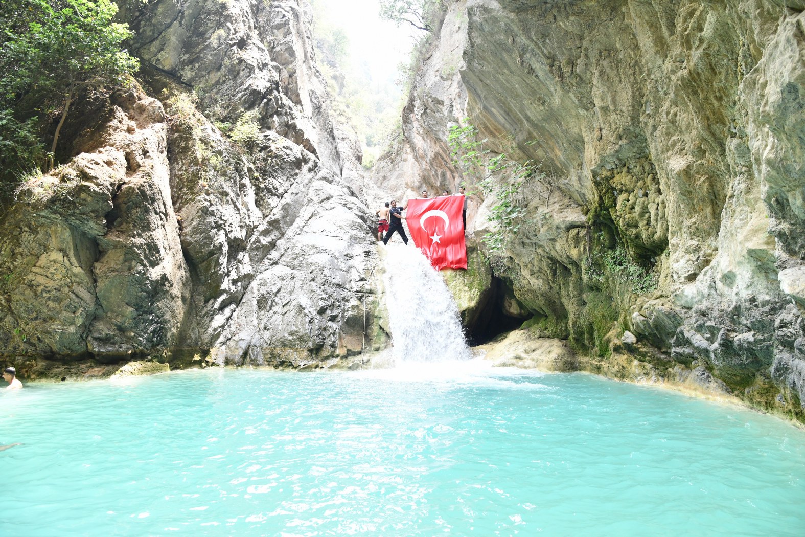 Kanyon geçişi sırasında dağcılık ve zipline yöntemleriyle 30 metrelik şelaleden güvenli iniş gerçekleştiren Çenet, bölgedeki kükürtlü su kaynaklarının analiz edilmesi için tahlil yapılması talimatı verdi.
