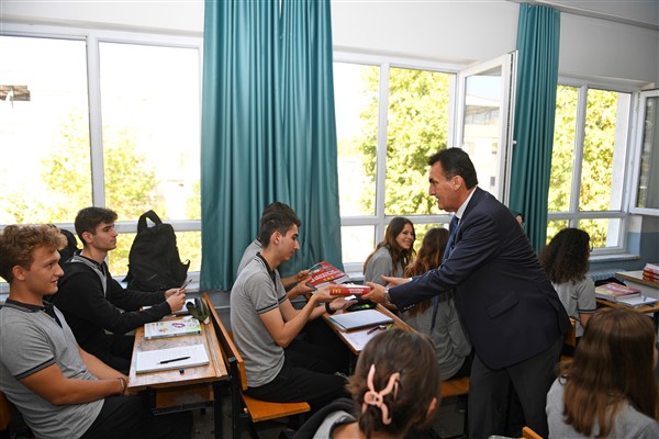 Başkan Dündar ayrıca, ziyaret ettiği lise son sınıf öğrencilerine, 2 bin 500 adet üniversiteye hazırlık yardımcı kitap seti hediye etti.