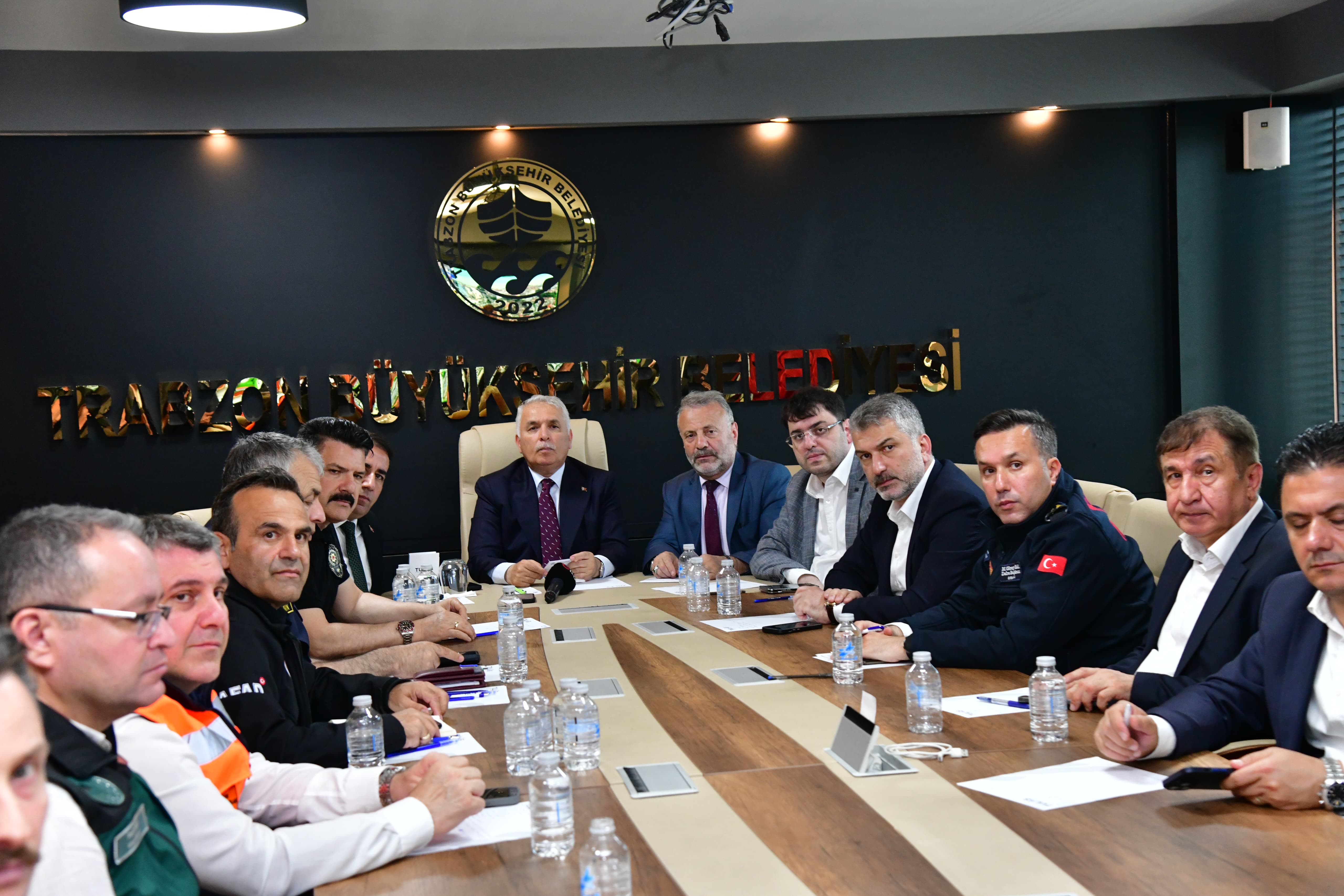 Öte yandan şiddetli yağışın neden olduğu hasarları yerinde görmek için Ortahisar'ın çeşitli mahallelerinde incelemelerde bulunan Trabzon Valisi Aziz Yıldırım ve Büyükşehir Belediye Başkan Vekili Faruk Kanca, daha sonra Büyükşehir Ulaşım Dairesi Başkanlığı’nda oluşturulan Afet Koordinasyon Merkezi'ne geçerek, Büyükşehir Belediyesi Genel Sekreteri Gürkan Üçüncü ve daire başkanlarından afete ilişkin çalışmalar hakkında bilgi aldı.