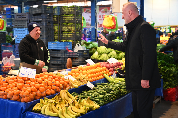 Sevgi Yolu incelemesinin ardından Ömer Matlı Kapalı Pazaryeri ve çevresine geçerek esnaf ve vatandaşlarla bir araya gelen Başkan Karabatı, pazaryerinde tezgah açan esnafı tek tek dolaşarak hayırlı işler diledi.