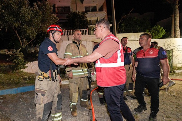Başkan Tugay, “Biz görevimizi yerine getirmeye çalışıyoruz, elimizden geleni yapıyoruz. Bazen, bugün olduğu gibi anormal rüzgarlarda helikopterler uçamadı, arkadaşlarımız ayakta durmakta zorlandı. Tüm personelimize teşekkür ediyorum. Bu evler yanmadıysa onlara borçluyuz. Diğer bölgelerde de hasarın önlenmesinde çok büyük katkıları var. Orman ekipler de diğer ekipler de aynı şekilde. Buraya gelen tüm diğer şehirlerin itfaiyeleri de hiçbir zaman haklarını ödeyemeyeceğimiz, minnet dolu olduğumuz insanlar. Her birine ayrı ayrı teşekkür ediyorum.” dedi.