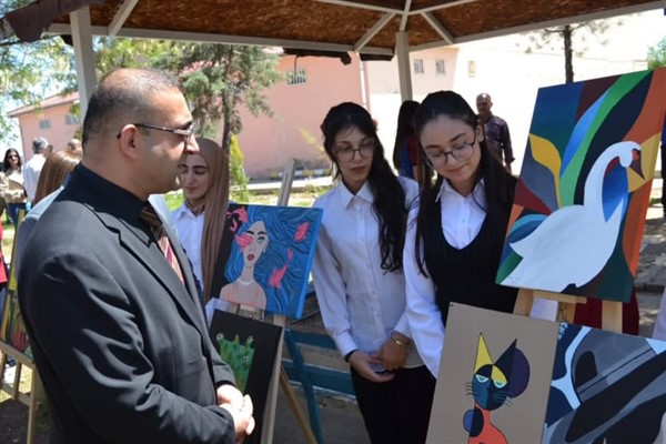 Diyarbakır, 29 Nisan (Hibya) - Diyarbakır’ın Bismil ilçesinde, Bismil Anadolu Lisesi tarafından düzenlenen “Renklerin ve Seslerin Buluşması” adlı resim sergisi, törenle açıldı.