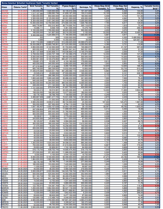İstanbul, 26 Mayıs (Hibya) – BMD Araştırma, BİST şirketleri nakit temettü dağıtım tarihlerini paylaştı.