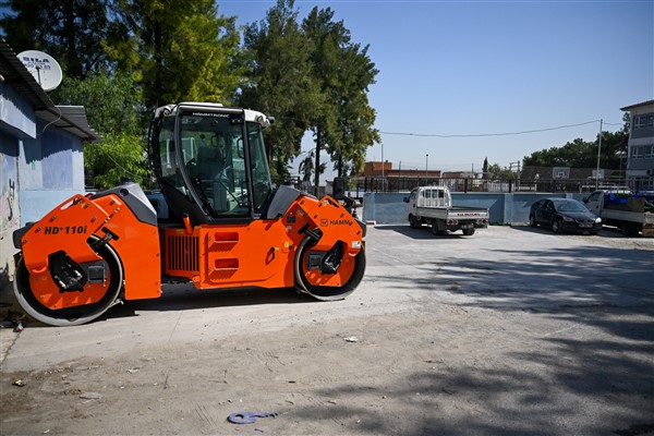 Bornova Belediyesi’nin Çamkule Mahallesi’ndeki asfalt çalışmalarında kullanılan iş makinelerine kimliği belirsiz çocuklar tarafından zarar verildi.
