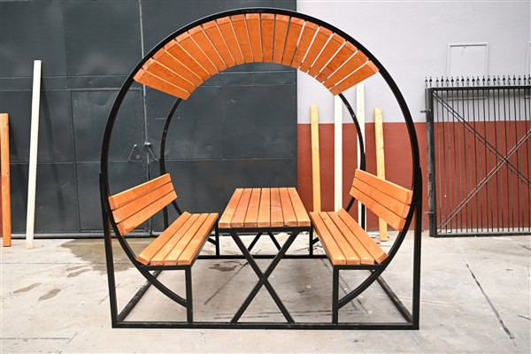 Bornova Belediyesi tarafından tasarlanan karşılıklı oturaklı, üzeri kapalı banklar, ilçenin farklı noktalarındaki parklara yerleştirilmeye hazırlanıyor. Demir iskeletinden ahşap kesimine, montajından cilasına kadar tüm üretim süreci Fen İşleri Şantiyesi’nde yürütülüyor.