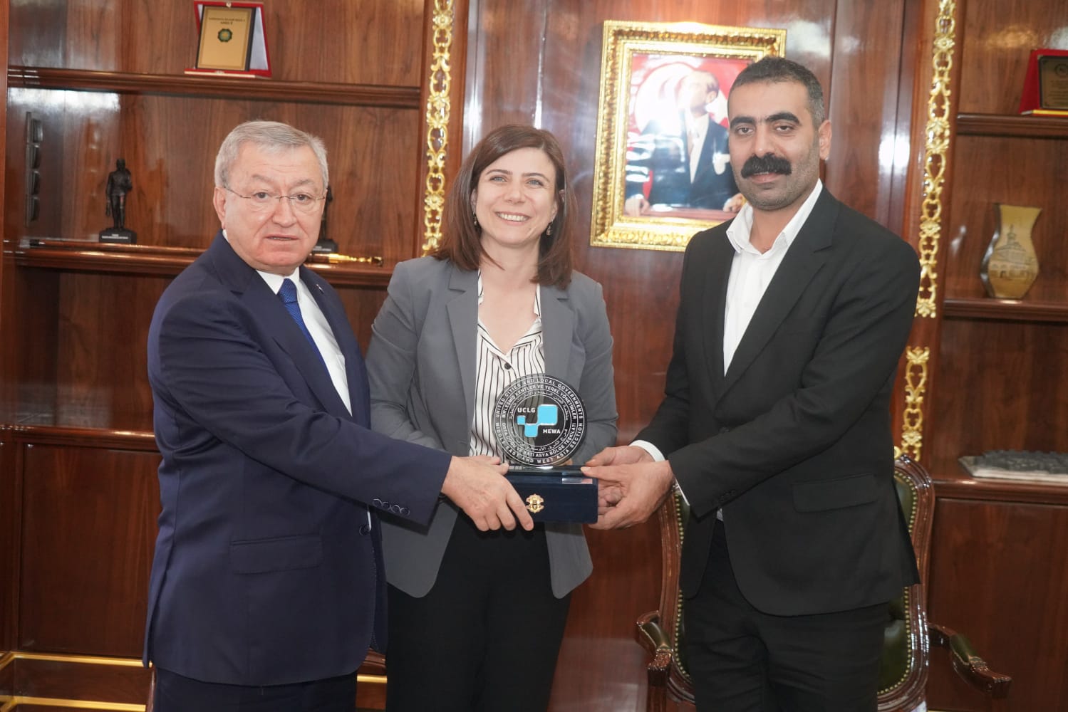 Yapılan görüşmenin ardından Duman, Eş Başkan Bucak ve Hatun’a UCLG-MEWA plaket hediye etti.