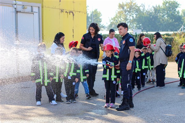 Yangın anında ve ev kazalarına karşı nasıl davranılması gerektiğinin anlatıldığı eğitimlerde, farklı yaş gruplarındaki öğrencilere yangın hortumu kullanımı gibi müdahale teknikleri, uygulamalı olarak gösterildi. Acil durumlarda uygulanması gereken tahliye prosedürleri ve yangın anında doğru davranış biçimlerinin de anlatıldığı eğitimlere, öğrenciler de meraklı sorularıyla eşlik etti.