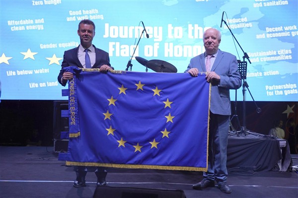 Avrupa Konseyi tarafından Çorlu’ya layık görülen Avrupa Şeref Bayrağı ödülü, Nazım Hikmet Ran Parkında düzenlenen törenle Avrupa Konseyi Parlamenter Meclisi Avrupa Ödülü Alt Komitesi Üyesi Joseph O’Reilly tarafından Çorlu Belediye Başkanı Ahmet Sarıkurt’a takdim edildi.
