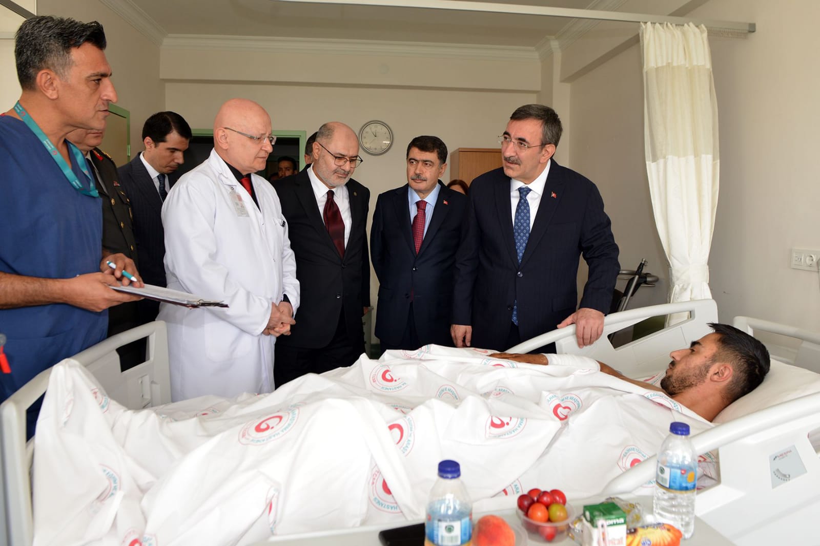 Cumhurbaşkanı Yardımcısı Cevdet Yılmaz, Milli Savunma Bakan Yardımcısı Alpaslan Kavaklıoğlu ve Ankara Valisi Vasip Şahin ile Gülhane Eğitim ve Araştırma Hastanesinde tedavileri devam eden gazileri ziyaret etti.