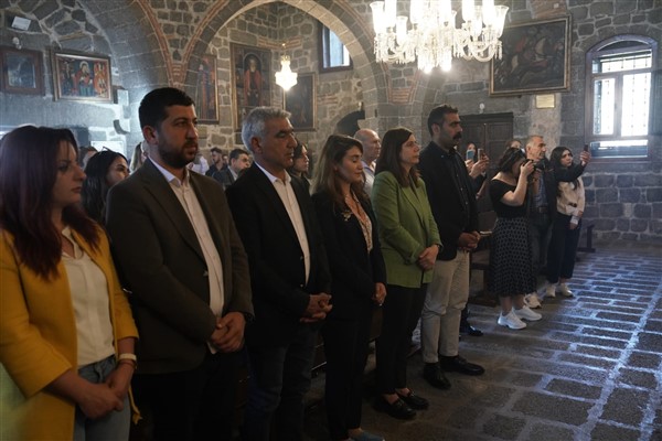 Diyarbakır Büyükşehir Belediyesi Eş Başkanları Serra Bucak ve Doğan Hatun, Meryem Ana Kilisesi'nde düzenlenen Paskalya ayinine katıldı.