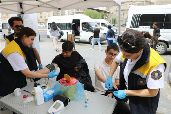Kurulan stantta Sağlık İşleri Dairesi personeli, yurttaşların tansiyonlarını kontrol etti, kan şekerlerini ölçüp, kan grubu belirleme testlerini yaptı.