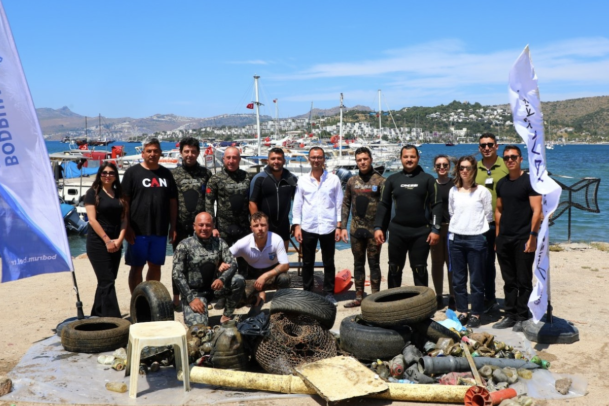 Bodrum Belediyesi personellerinden oluşan gönüllü dalış ekibi tarafından gerçekleştirilen temizlikte, denizden cam ve plastik şişeler, içecek kutuları, plastik kasalar ile araba lastiği gibi çok sayıda atık çıkarıldı.