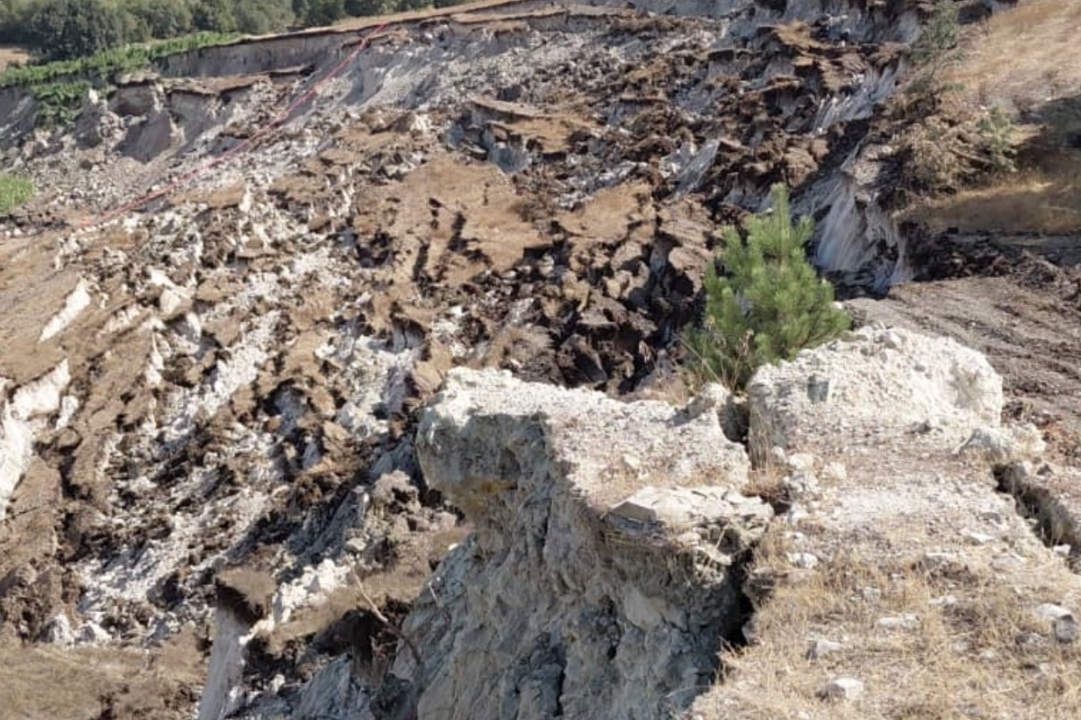 Bursa’nın Orhaneli ilçesine bağlı Dündar Köyü’nde meydana gelen heyelan, üzüm bağları ve silajlık mısır tarlalarında zarara yol açtı.
