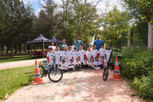Aktif Yaşam Parkı’nda gerçekleştirilen etkinlikte çocuklara bisikletin bölümleri ve güvenlik ekipmanları tanıtıldı. Çocuklar, uzman eğitmenler eşliğinde temel sürüş eğitim parkurunda deneme sürüşleri yaptırıldı.