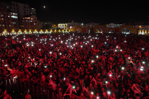 Konser öncesinde Pilot Orhan Özgülbaş motorlu yamaç paraşütü gösterisi gerçekleştirdi.