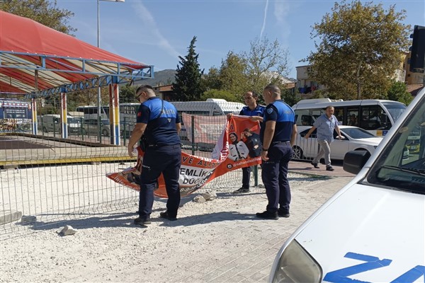 Belediyeden yapılan bilgilendirmeye göre, kamusal alanlara izinsiz şekilde asılan bez afişler Zabıta Müdürlüğü ekipleri tarafından kaldırıldı.
