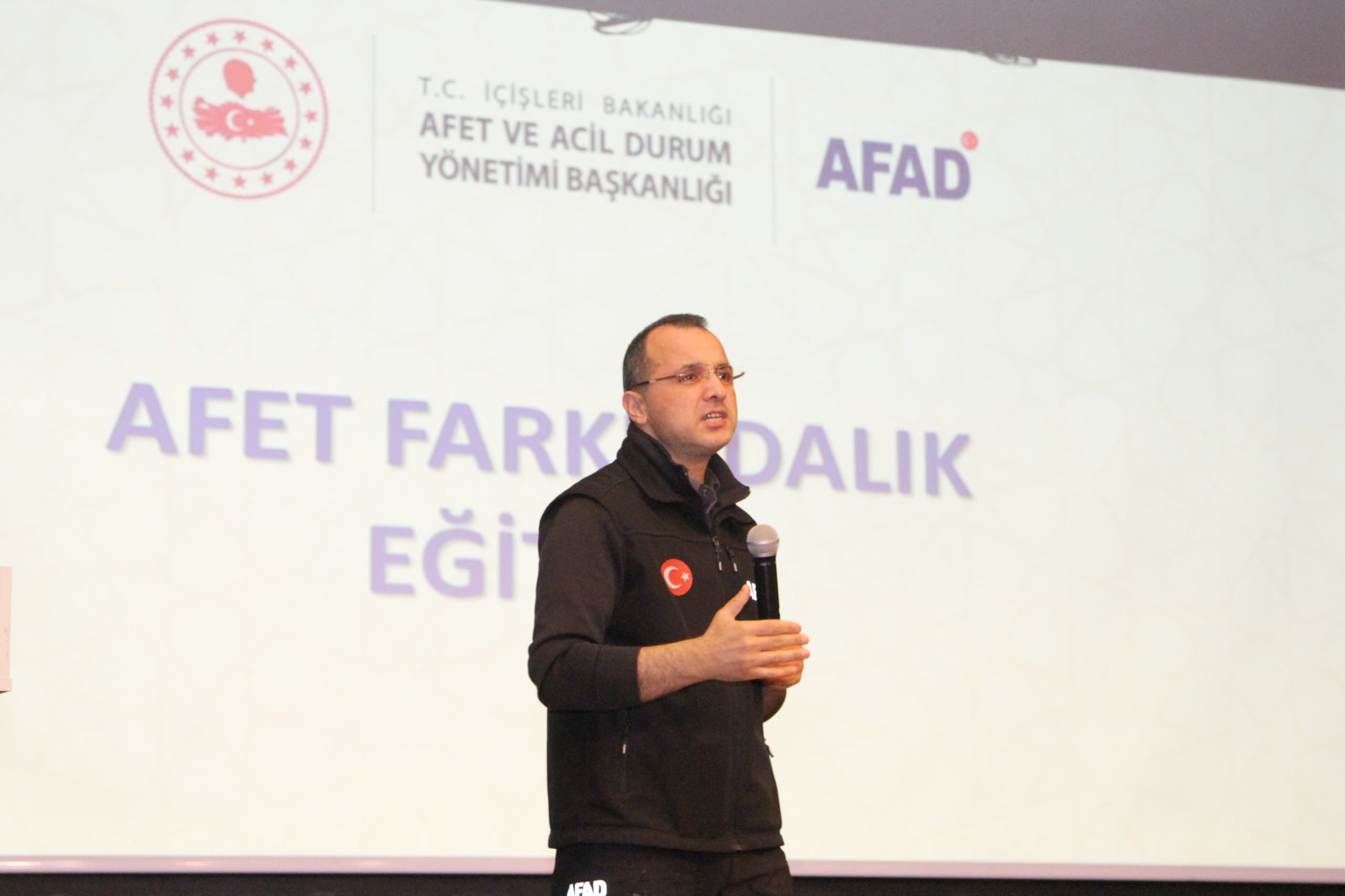 Belediye Kültür ve Fuar Merkezi’nde gerçekleştirilen eğitimde; Afet Farkındalık, Yangın Farkındalık ve Tsunami Farkındalık ile Deprem Anı, Tahliye ve Toplanma Alanı konuları tüm detaylarına kadar anlatıldı.