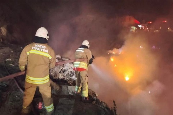Orman Bölge Müdürlüğü ve Hatay Büyükşehir Belediyesi itfaiye ekiplerinin yoğun çabası sürerken, rüzgar söndürme çalışmalarını zorlaştırıyor.