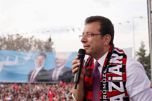 Alanı hınca hınç dolduran Gazianteplileri, “Gaziantep'in fıstığı gibisin” sözleriyle selamlayan İmamoğlu, vatandaşların havaya kaldırdığı dövizleri tek tek okuduktan sonra “Burada olağanüstü güzel mesajlar var, birileri gibi değil, ben her yazdığınız kelimenin anlamını biliyorum. Bazıları anlamıyor ama ben biliyorum” şeklinde konuştu. Bugünkü buluşma için talep edilen Demokrasi Meydanı’nın Gaziantep Valisi Davut Gül tarafından etkinliğe kapatıldığını hatırlatan İmamoğlu, “Demokrasi Meydanı milletindir. Size söz Gaziantepliler, size söz. Milletin iktidarında, valiler, hükümetin değil, devletin ve milletin valisi olacak. Size söz; memleketin her bürokratı, siyasete eşit olacak, kimseye boyun eğmeyecek. Devletin bürokratı, devletin valisi, devleti temsil eder. Atatürk'ü temsil eder. Kimseye boyun eğmez” şeklinde konuştu. Türkiye Büyük Millet Meclisi’nin Mustafa Kemal Atatürk ile birlikte Gaziantep’e “Gazi” unvanı verdiğini hatırlatan İmamoğlu, “İkisi de bizim canımız, ciğerimiz. Cumhuriyetimizin yüzüncü yılında, hep birlikte bir muhasebe yapmak durumundayız. Bu ülkede yaşanan ve Türkiye Cumhuriyeti’ne yakışmayan haksızlıklara, adaletsizliklere karşı dimdik ayakta durmak ve yüzleşmek zorundayız. Türkiye Cumhuriyeti, bu topraklarda herkes eşit yaşasın, bu ülkede adalet hakim olsun diye kuruldu. Ama bugün 86 milyon insan hak, hukuk, adalet istiyor. Devlet dairelerinde, mahkeme kararlarında adalet olsun istiyor. Gelir dağılımlarında, eğitimde, sağlıkta bütün imkanlarda adalet olsun istiyor” ifadelerini kullandı.