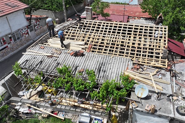 Isparta Belediyesi, Bahçelievler Mahallesinde yangından dolayı zarar gören bir evin tadilatını gerçekleştiriyor.