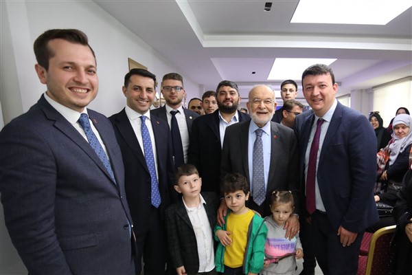 AFYONKARAHİSAR-27.04.2023-HİBYA- Saadet Partisi Genel Başkanı Temel Karamollaoğlu, Zafer Meydanı’nda düzenlenen miting sonrası Afyonkarahisar İl Başkanlığı’na ziyarette bulundu.