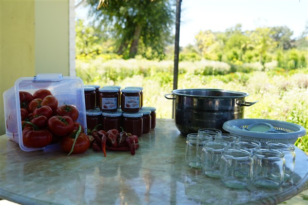 Proje kapsamında bu sezonun ilk domates hasadı gerçekleştirildi. Hasat edilen yerel domateslerin bir kısmı, gelecek nesiller için tohumluk olarak ayrıldıktan sonra, kalan mahsuller geleneksel yöntemlerle işlenerek katkısız domates sosuna dönüştürüldü. Büyük kazanlarda, açık ateşte kaynatılan soslar, doğal ve ev yapımı lezzetiyle dikkat çekiyor.